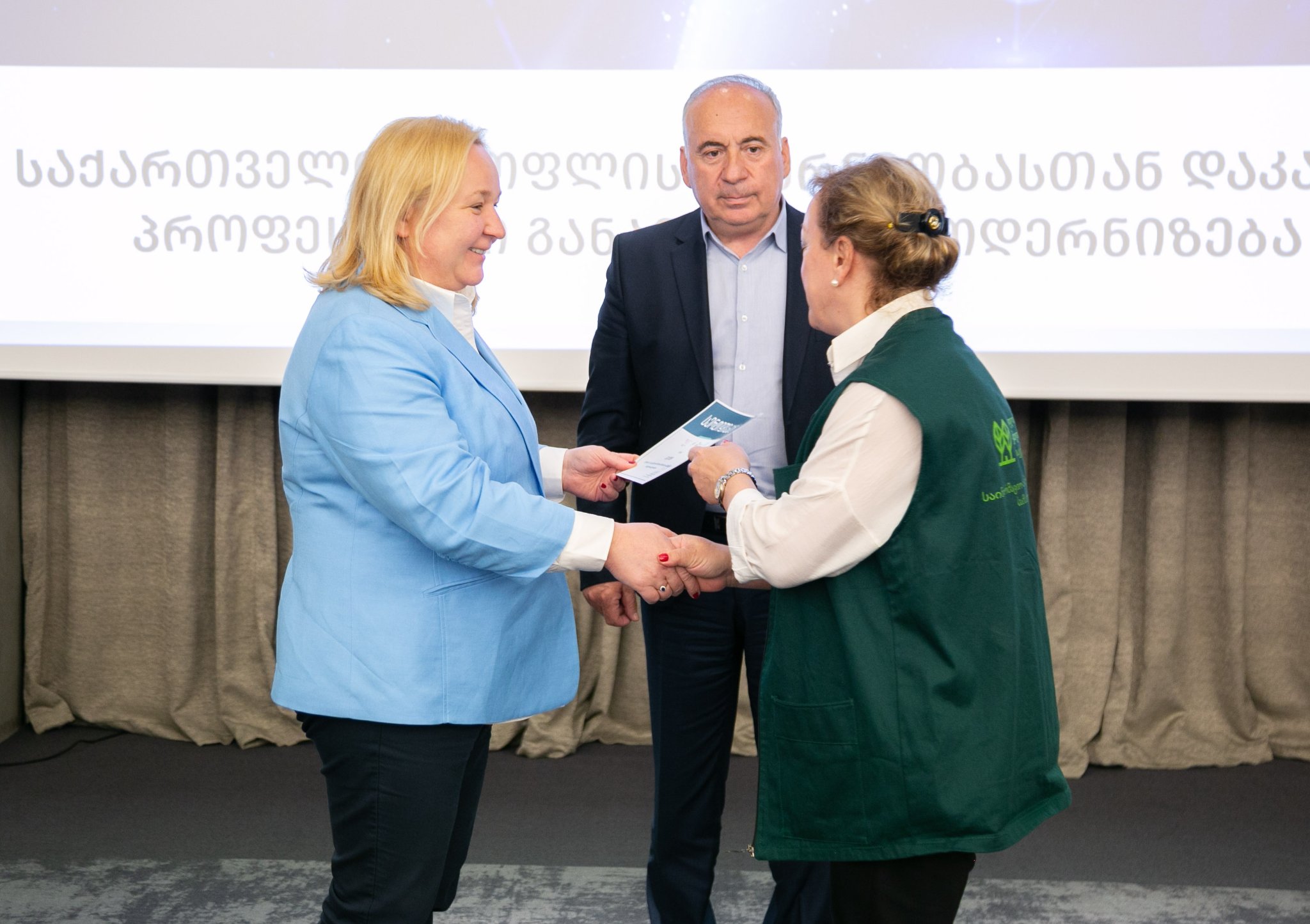 შეხვედრა, რომელზეც  პროექტის ფარგლებში განხორციელებული ღონისძიებების შედეგები განიხილეს, გარემოს დაცვისა და სოფლის მეურნეობის მინისტრის მოადგილემ, სოლომონ პავლიაშვილმა, გაეროს განვითარების პროგრამის (UNDP) ხელმძღვანელის მოადგილემ საქართველოში  ანნა ჩერნიშოვამ და სამხრეთ კავკასიაში შვეიცარიის თანამშრომლობის ოფისის ეკონომიკური განვითარების პროგრამის უფროსმა, ბექა თაგაურმა გახსნეს.