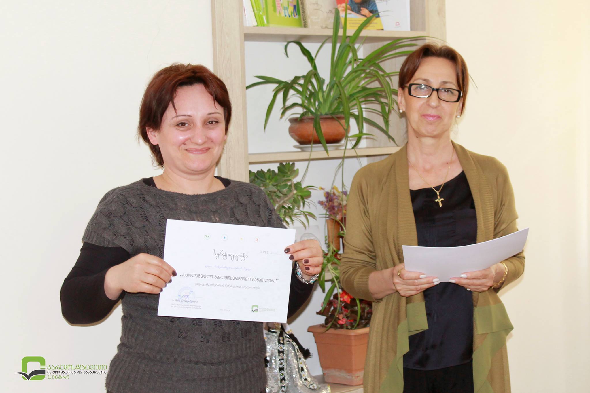 ტრენინგის მონაწილე აღმზრდელებსა და მეთოდისტებს დაურიგდათ სასკოლო მზაობის პროგრამის ფარგლებში, ცენტრის მიერ შემუშავებული სახელმძღვანელო აღმზრდელთათვის - ,,სკოლამდელი გარემოსდაცვითი განათლება“ და გადაეცათ სერტიფიკატები.