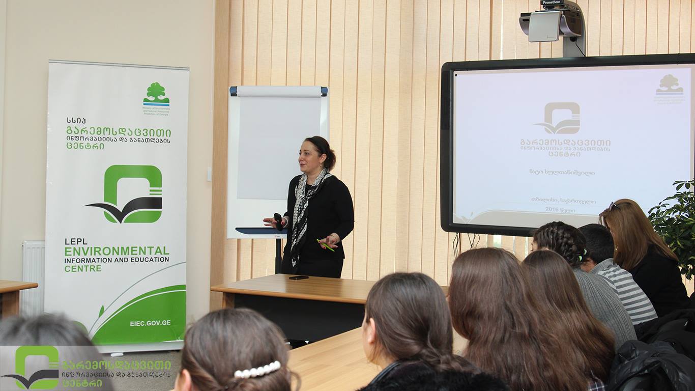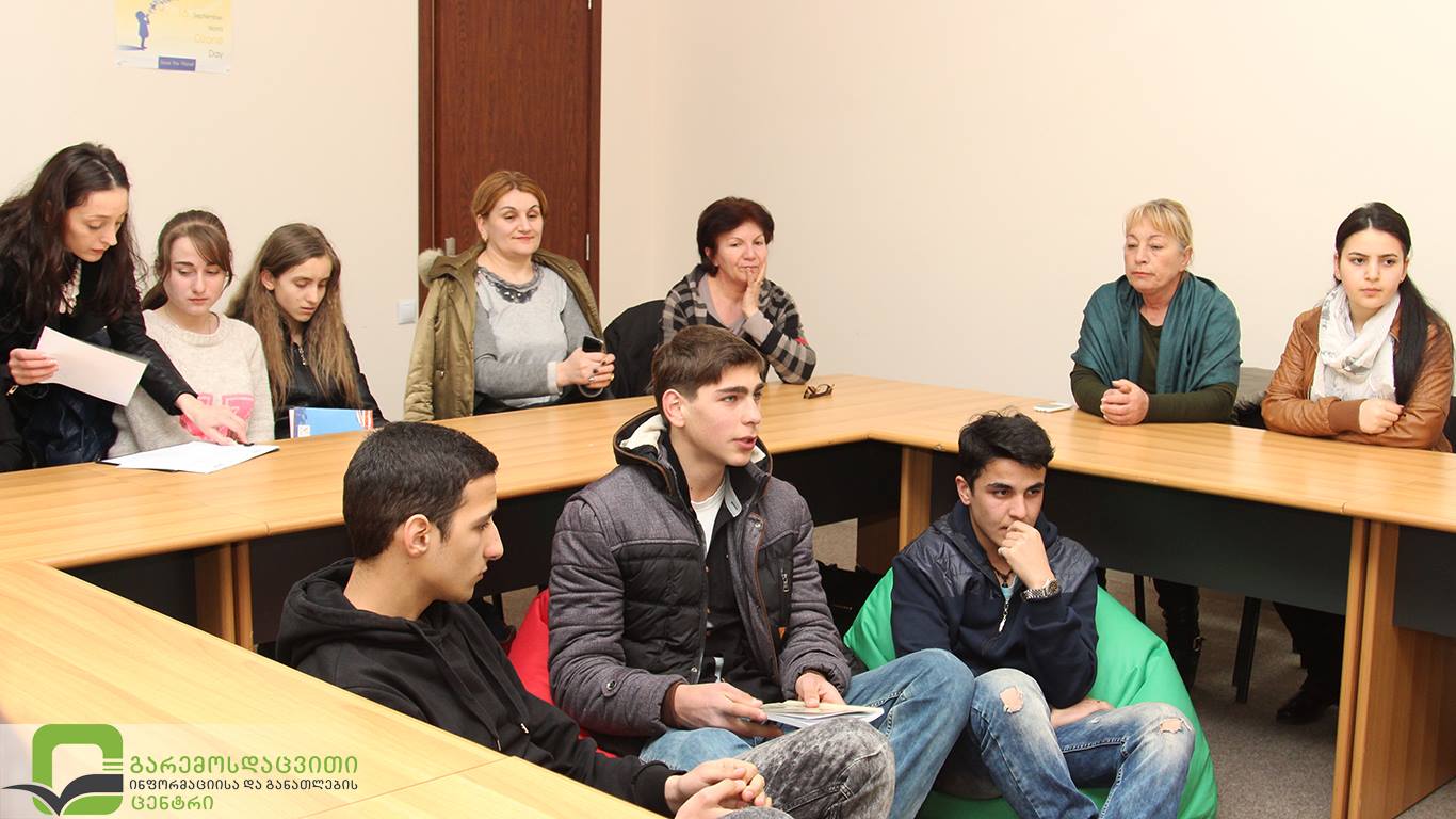 გარემოსდაცვითი ინფორმაციისა და განათლების ცენტრი აგრძელებს შეხვედრებს სკოლის მოსწავლეებთან. ჩვენს ცენტრს თეთრიწყაროსა და ბოლნისის სკოლის 20 მოსწავლე ესტუმრა. „მომავლის თაობის“ პროგრამის წარმომადგენლებს შეხვედრა ბიომრავალფეროვნებისა და დაცული ტერიტორიების შესახებ ჩვენი ცენტრის განათლების პროექტების სამსახურის უფროსმა ნატა სულთანიშვილმა ჩაუტარა.