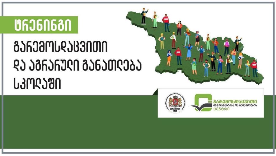 საქართველოს გარემოს დაცვისა და სოფლის მეურნეობის სამინისტროს სსიპ გარემოსდაცვითი ინფორმაციისა და განათლების ცენტრი ახორციელებს ზოგადი განათლების დაწყებითი (I-VI კლასი) საფეხურის, გეოგრაფიისა და სამოქალაქო განათლების მასწავლებლების ტრენინგს - ,,გარემოსდაცვითი და აგრარული განათლება სკოლაში”.