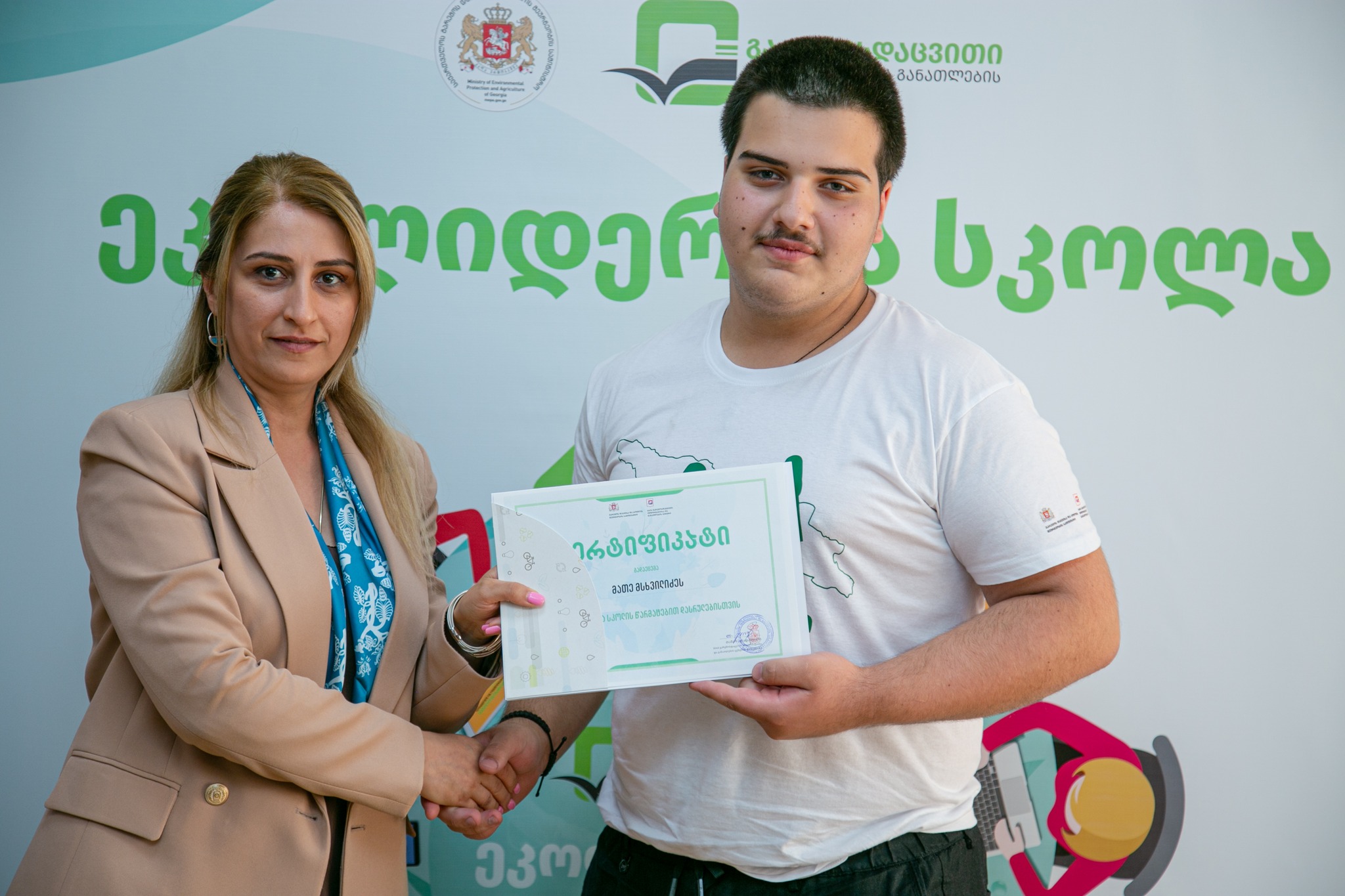 „ეკოლიდერთა სკოლის“ სასწავლო კურსის შემაჯამებელ შეხვედრაზე, გარემოს დაცვისა და სოფლის მეურნეობის მინისტრის მოადგილემ, სოლომონ პავლიაშვილმა ახალგაზრდებს სერტიფიკატები გადასცა.