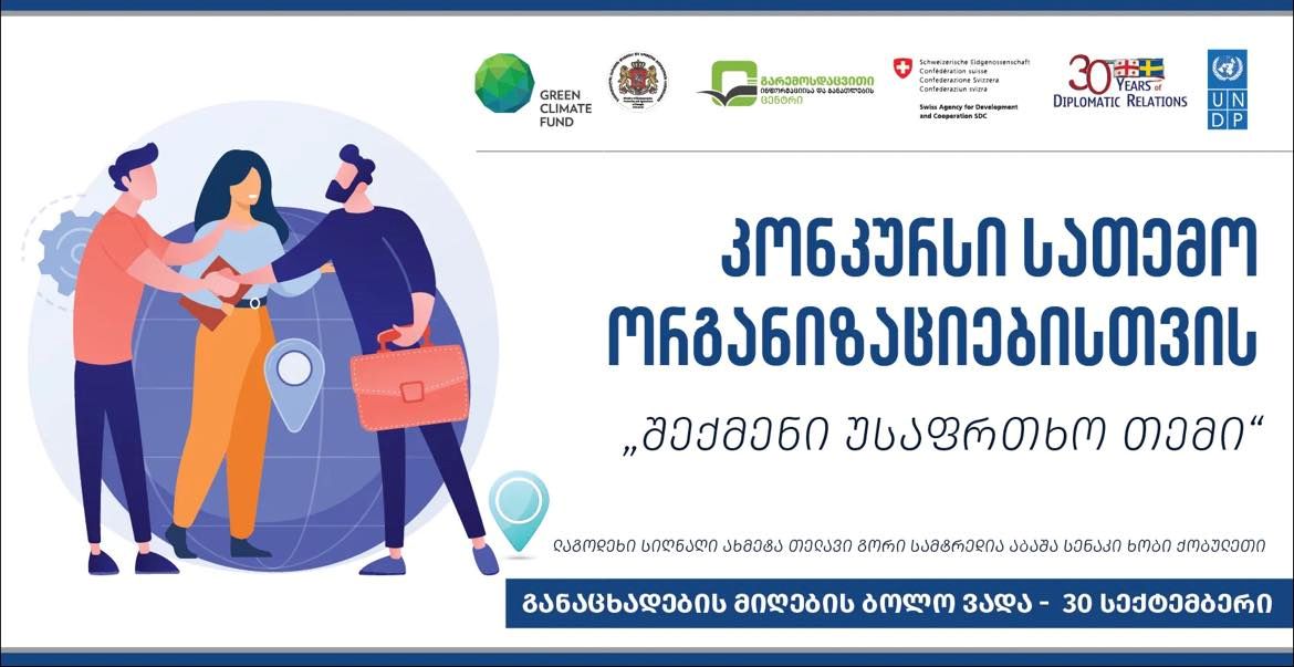 გარემოსდაცვითი ინფორმაციისა და განათლების ცენტრი, გაეროს განვითარების პროგრამის (UNDP) ხელშეწყობით პროექტის - ,,კლიმატის ცვლილებით გამოწვეული კატასტროფების რისკის შემცირება საქართველოში” ფარგლებში აცხადებს კონკურსს სათემო ორგანიზაციებისთვის - ,,შექმენი უსაფრთხო თემი”.