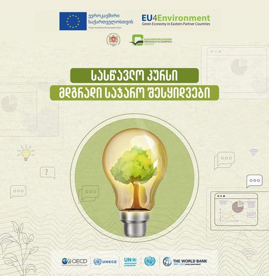 სასწავლო კურსი ტარდება ევროკავშირის მიერ დაფინანსებული EU4Environment პროგრამის ფარგლებში, საქართველოს გარემოს დაცვისა და სოფლის მეურნეობის სამინისტროს გარემოსდაცვითი ინფორმაციისა და განათლების ცენტრის, სახელმწიფო შესყიდვების სააგენტოსა და გაეროს გარემოსდაცვითი პროგრამის (UNEP) მჭიდრო თანამშრომლობით.