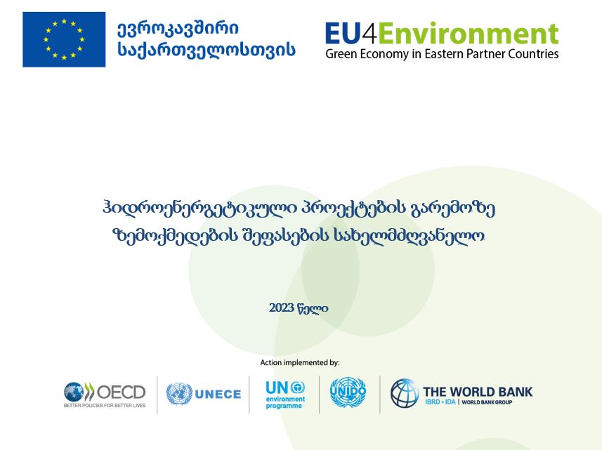 ევროკავშირის ფინანსური მხარდაჭერით, მიმდინარე პროგრამის - „ევროკავშირი გარემოსთვის” ფარგლებში, გარემოზე ზემოქმედების შეფასების ინსტრუმენტის ეფექტიანი განხორციელების მიზნით, შემუშავდა ჰიდროენერგეტიკული პროექტების გარემოზე ზემოქმედების შეფასების სახელმძღვანელო.