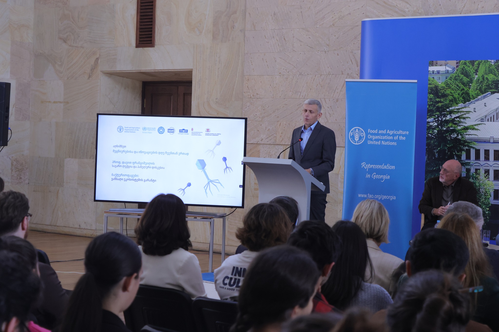 საჯარო ლექცია გაეროს სურსათისა და სოფლის მეურნეობის ორგანიზაციის (FAO) ორგანიზებითა და გარემოსდაცვითი ინფორმაციისა და განათლების ცენტრის, ივანე ჯავახიშვილის სახელობის თბილისის სახელმწიფო უნივერსიტეტის, ჯანმრთელობის მსოფლიო ორგანიზაციისა (WHO) და საქართველოს ზოგადი და გამოყენებითი მიკრობიოლოგიის ასოციაციის პარტნიორობით გაიმართა.