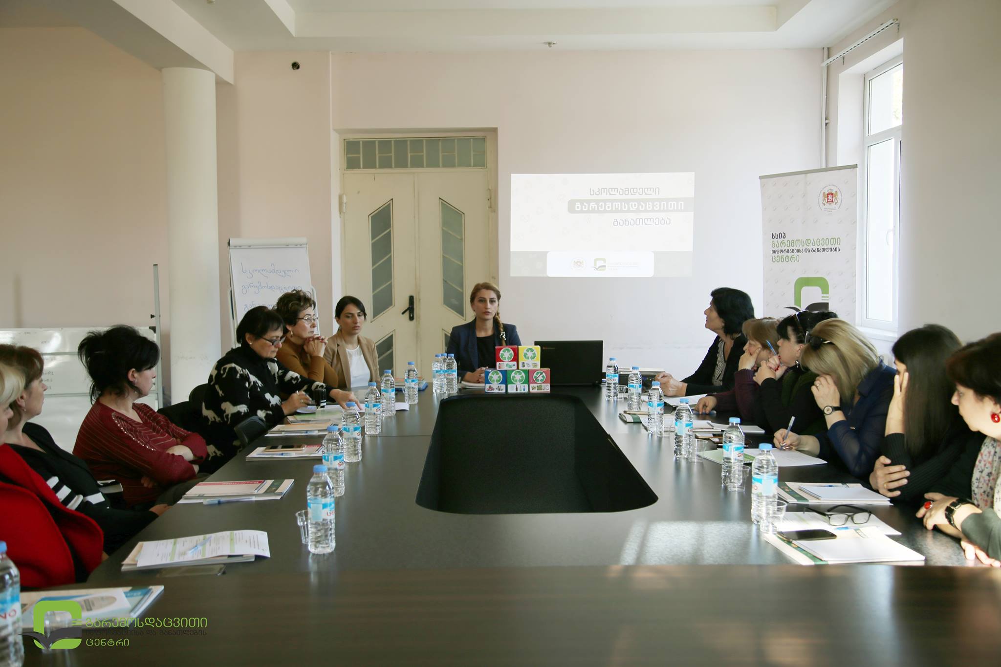 შეხვედრის მონაწილეებს გარემოსდაცვითი ინფორმაციისა და განათლების ცენტრის დირექტორმა თამარ ალადაშვილმა მიმართა დაყურადღება გაამახვილა გარემოსდაცვითი პრობლემების აღმოფხვრაში სკოლამდელი განათლების როლზე.