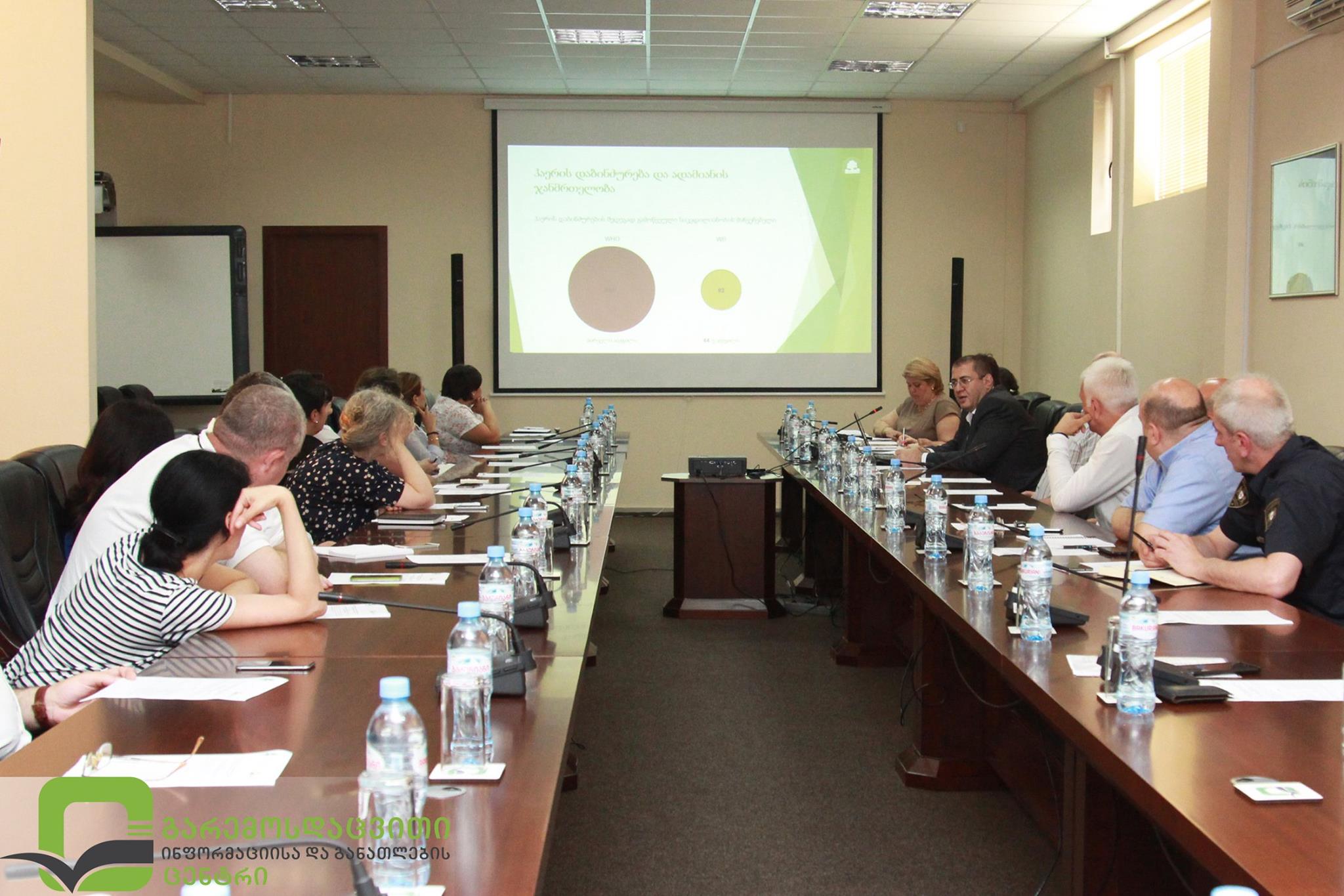 გარემოსა და ბუნებრივი რესურსების დაცვის მინისტრის მოადგილე თეიმურაზ მურღულია სამთავრობო და არასამთავრობო უწყებების წარმომადგენლებს გარემოსდაცვითი ინფორმაციისა და განათლების ცენტრში შეხვდა. შეხვედრაზე ატმოსფერული ჰაერის დაბინძურების და ადამიანის ჯანმრთელობასა და გარემოზე მისი ზეგავლენის შემცირების საკითხებზე იმსჯელეს'