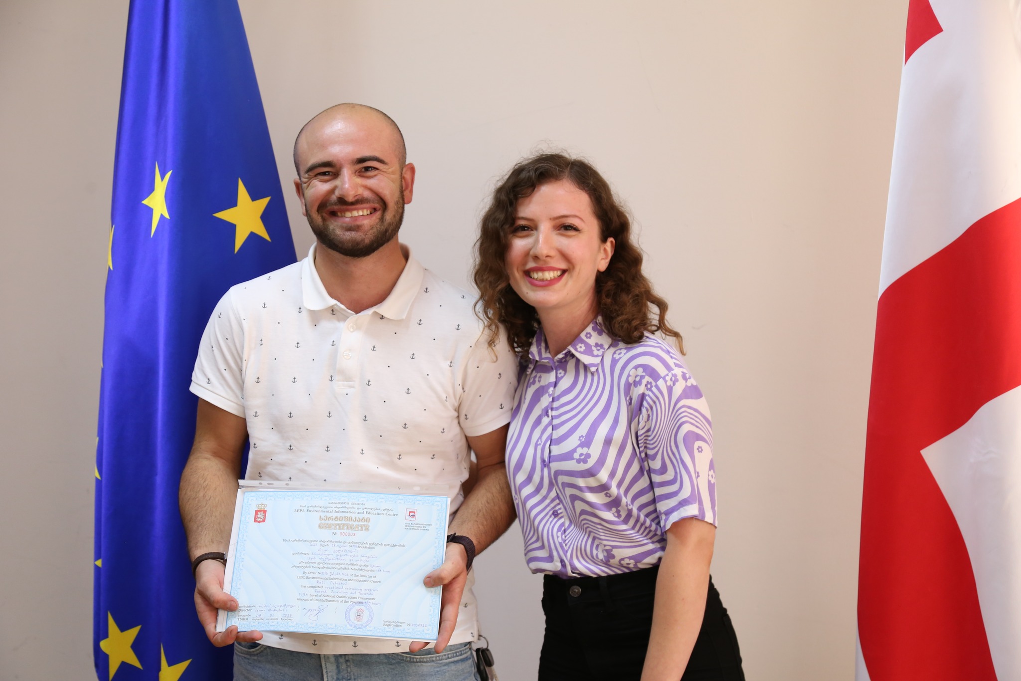 პროფესიული გადამზადების პროგრამა „ტყის ინვენტარიზაცია და ტაქსაცია" 12-მა ახალგაზრდამ წარმატებით დაასრულა. კურსდამთავრებულებს სერტიფიკატები გარემოსდაცვითი ინფორმაციისა და განათლების ცენტრის დირექტორმა თამარ ალადაშვილმა და ეროვნული სატყეო სააგენტოს უფროსის მოადგილემ ნათია იორდანიშვილმა გადასცეს.